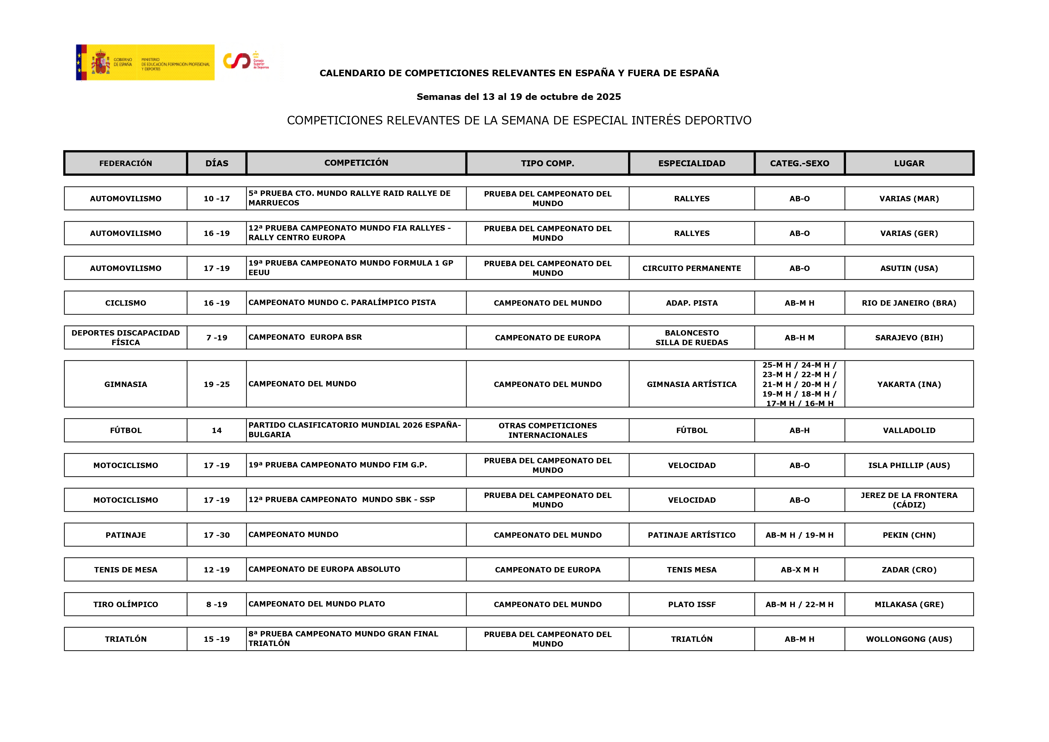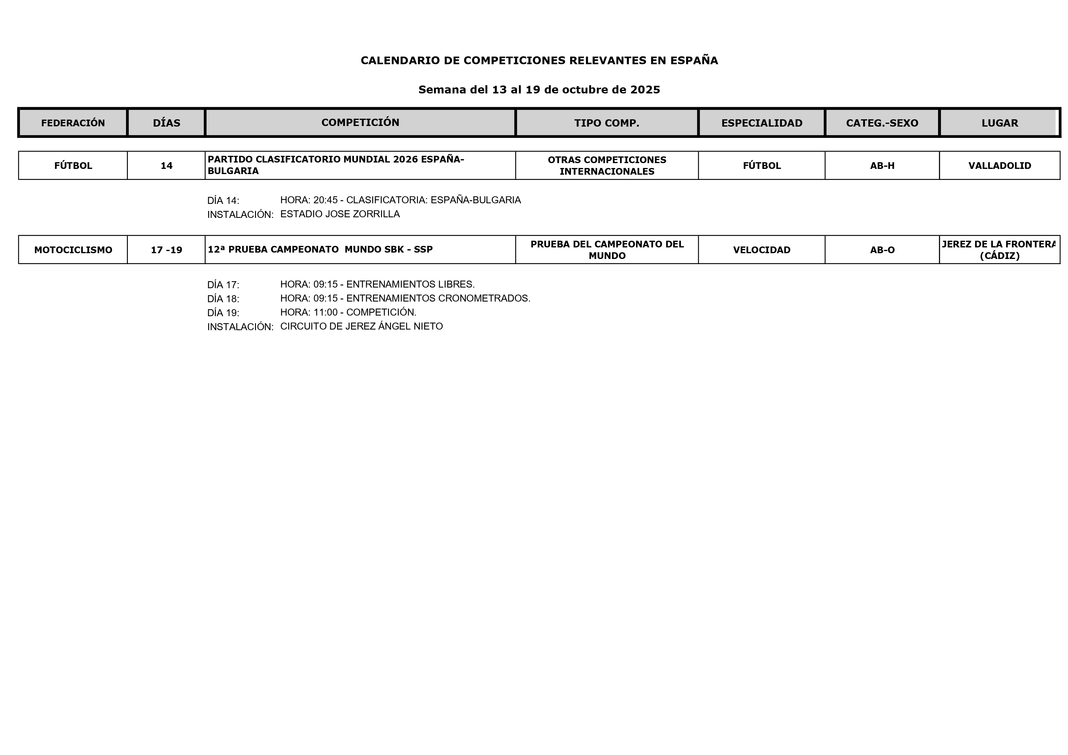 RESULTADOS DEPORTIVOS RELEVANTES: Resultados deportivos 29-09 a 05-10