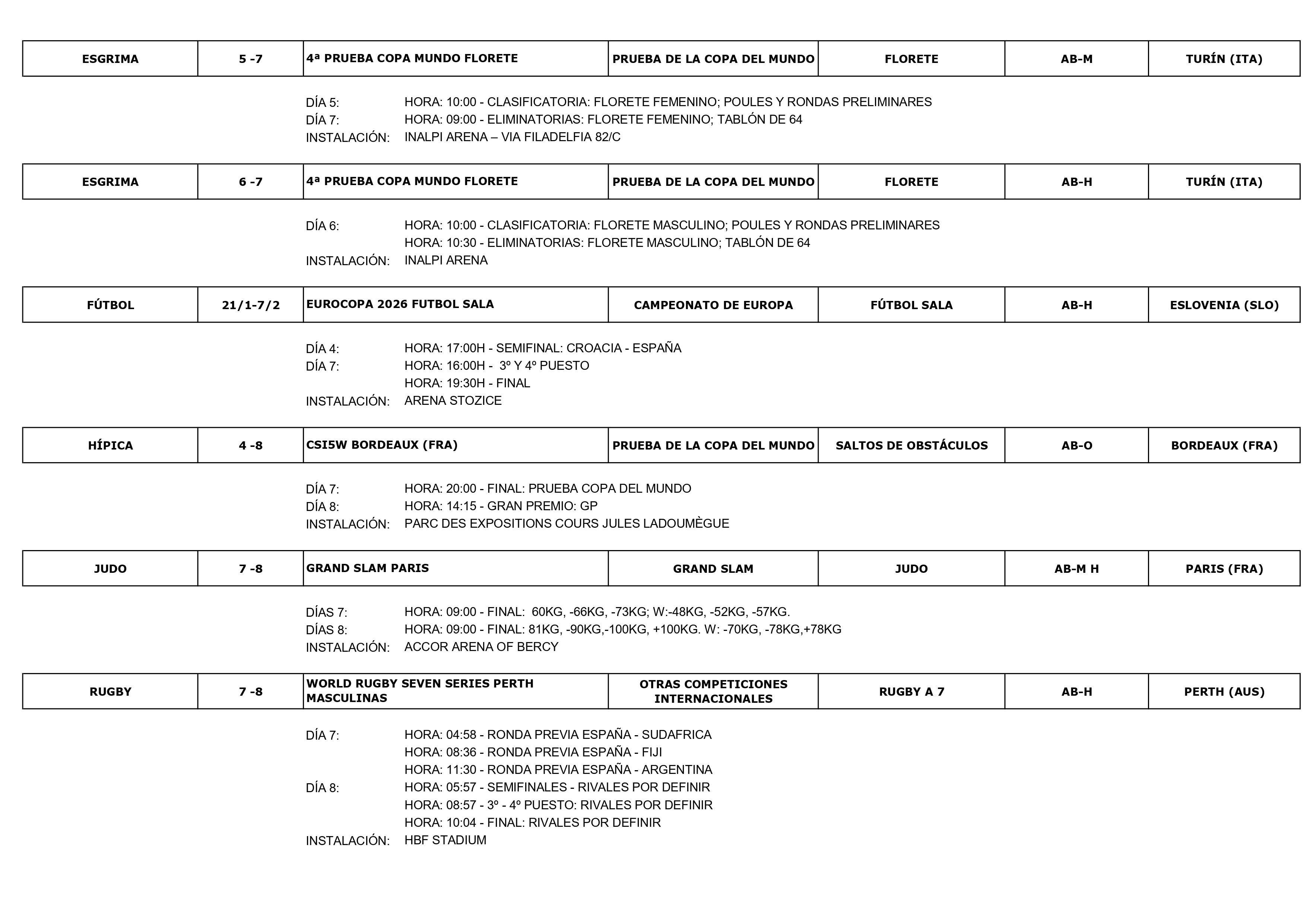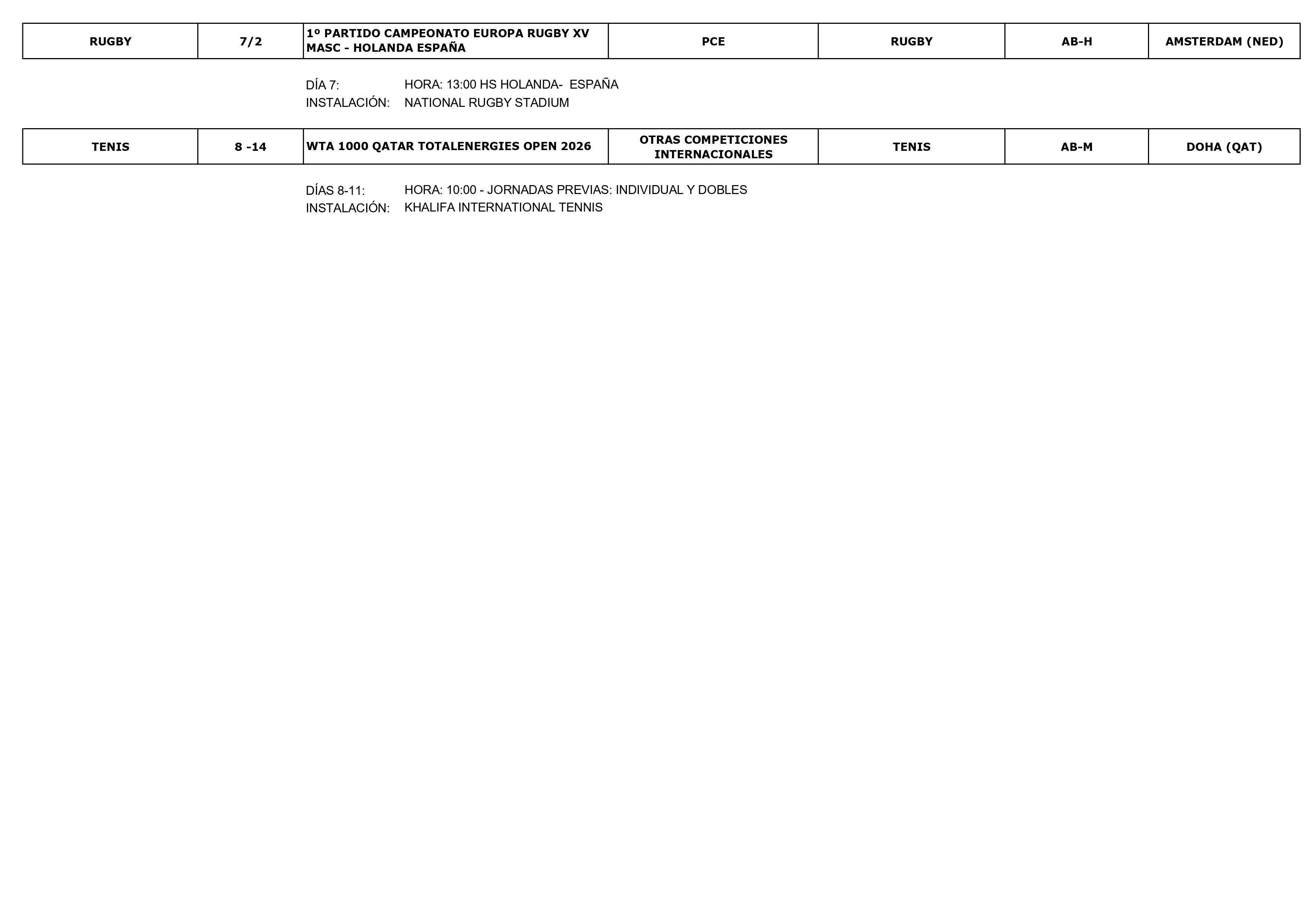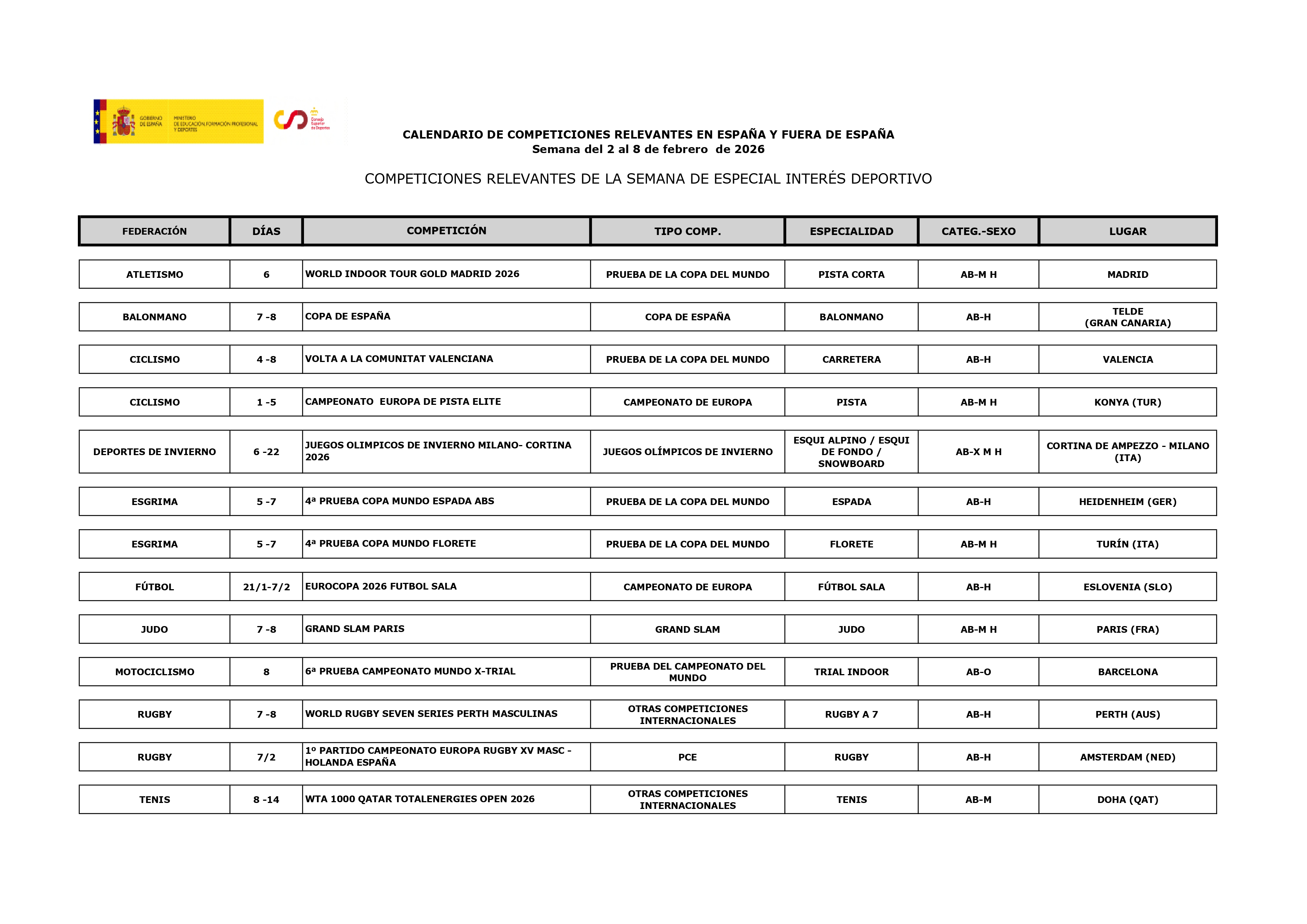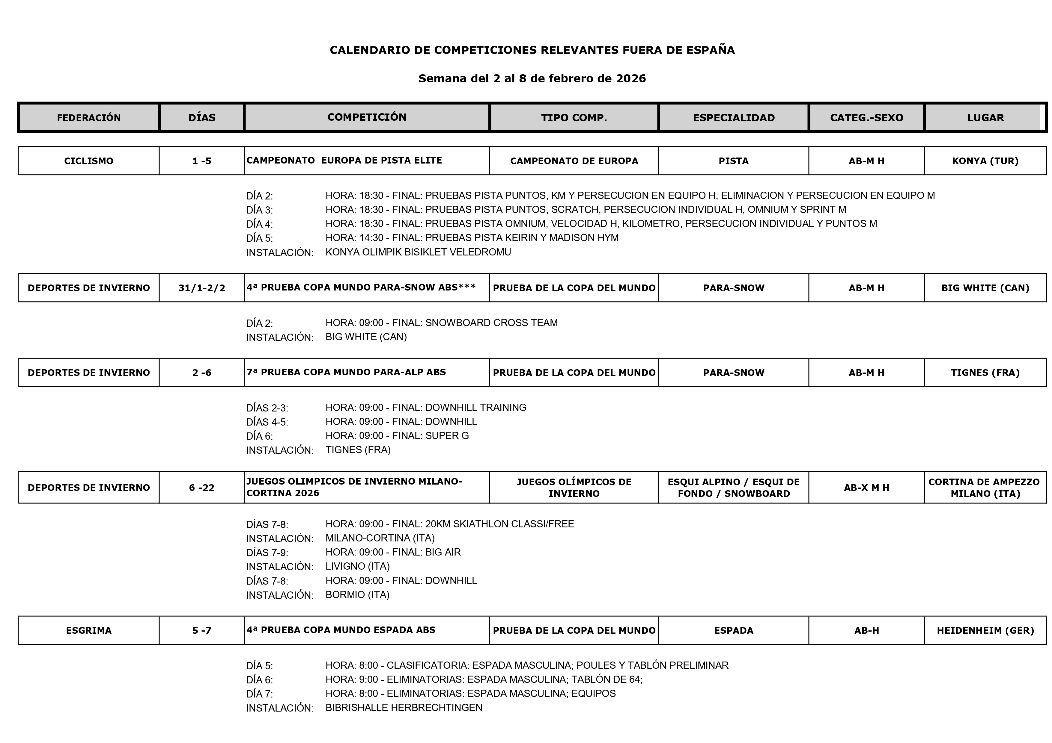 RESULTADOS DEPORTIVOS RELEVANTES: Resultados deportivos del 26 de enero al 1 de febrero de 2026