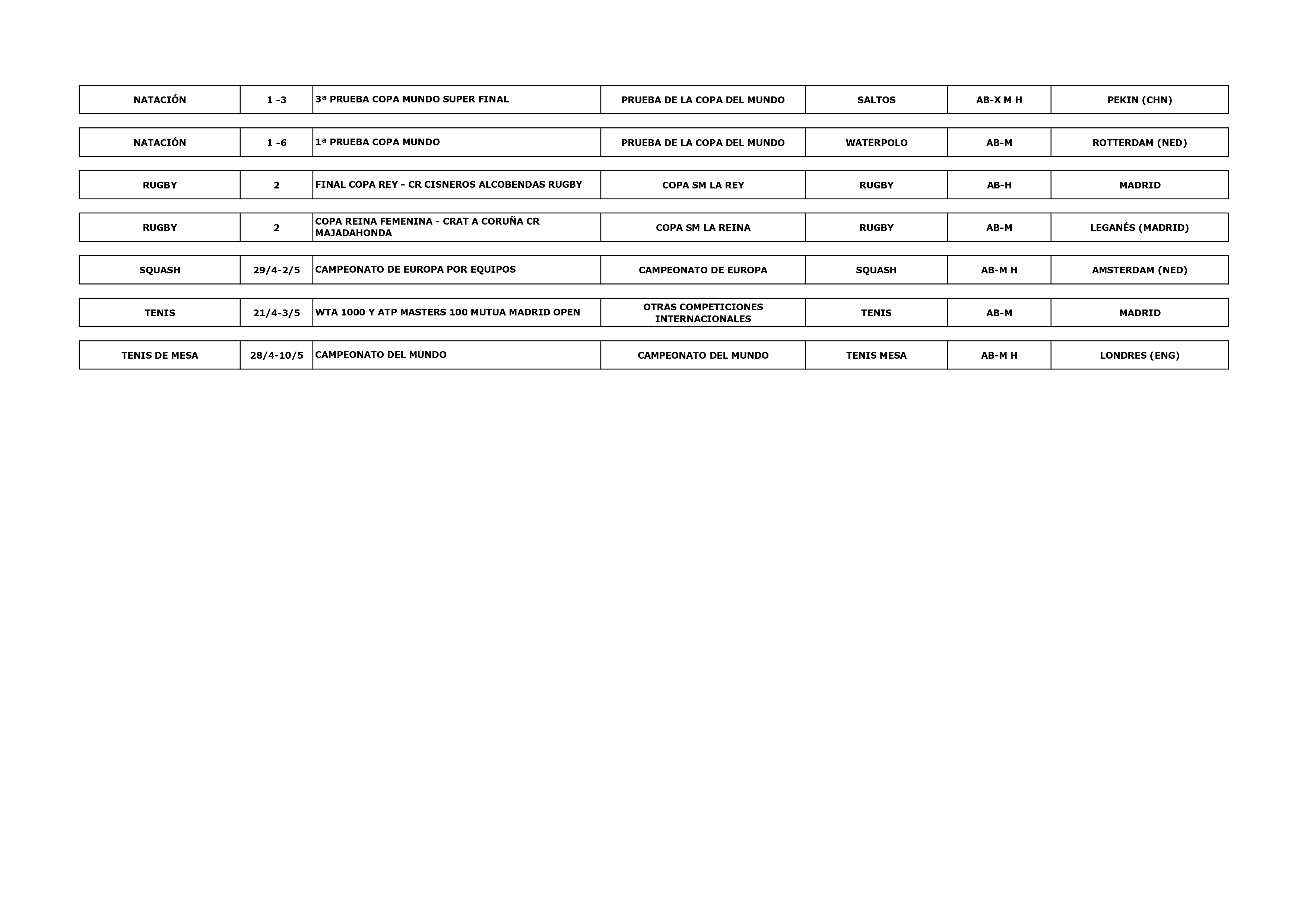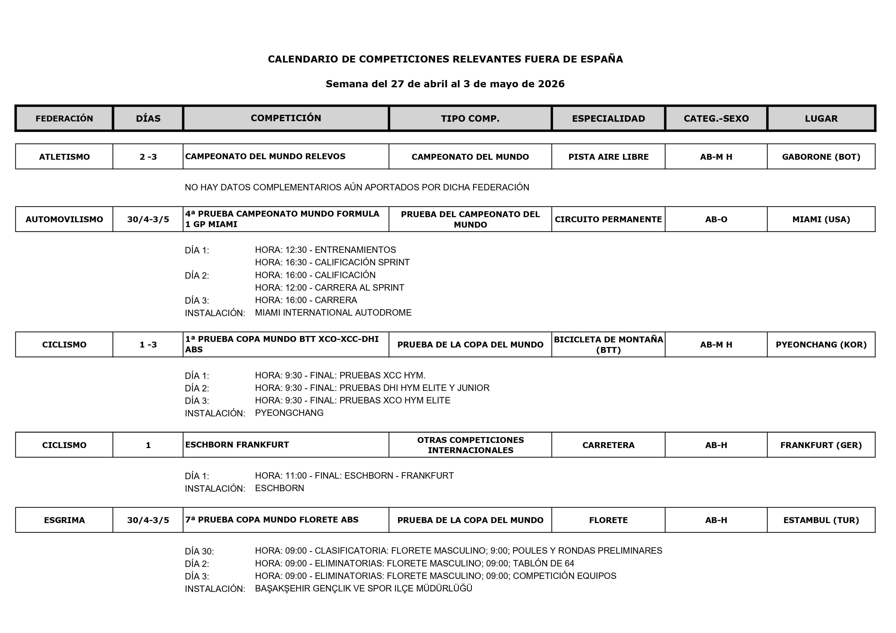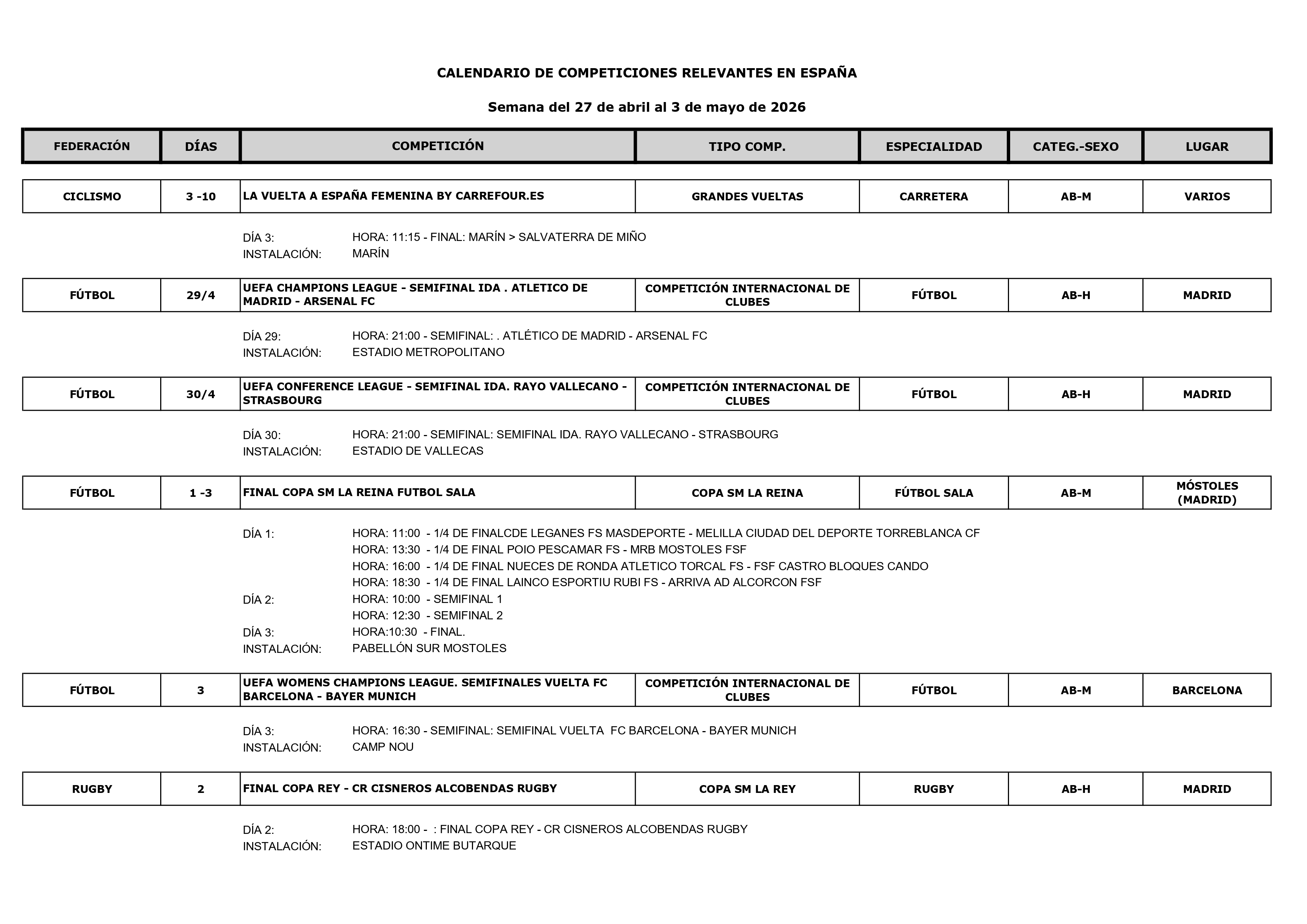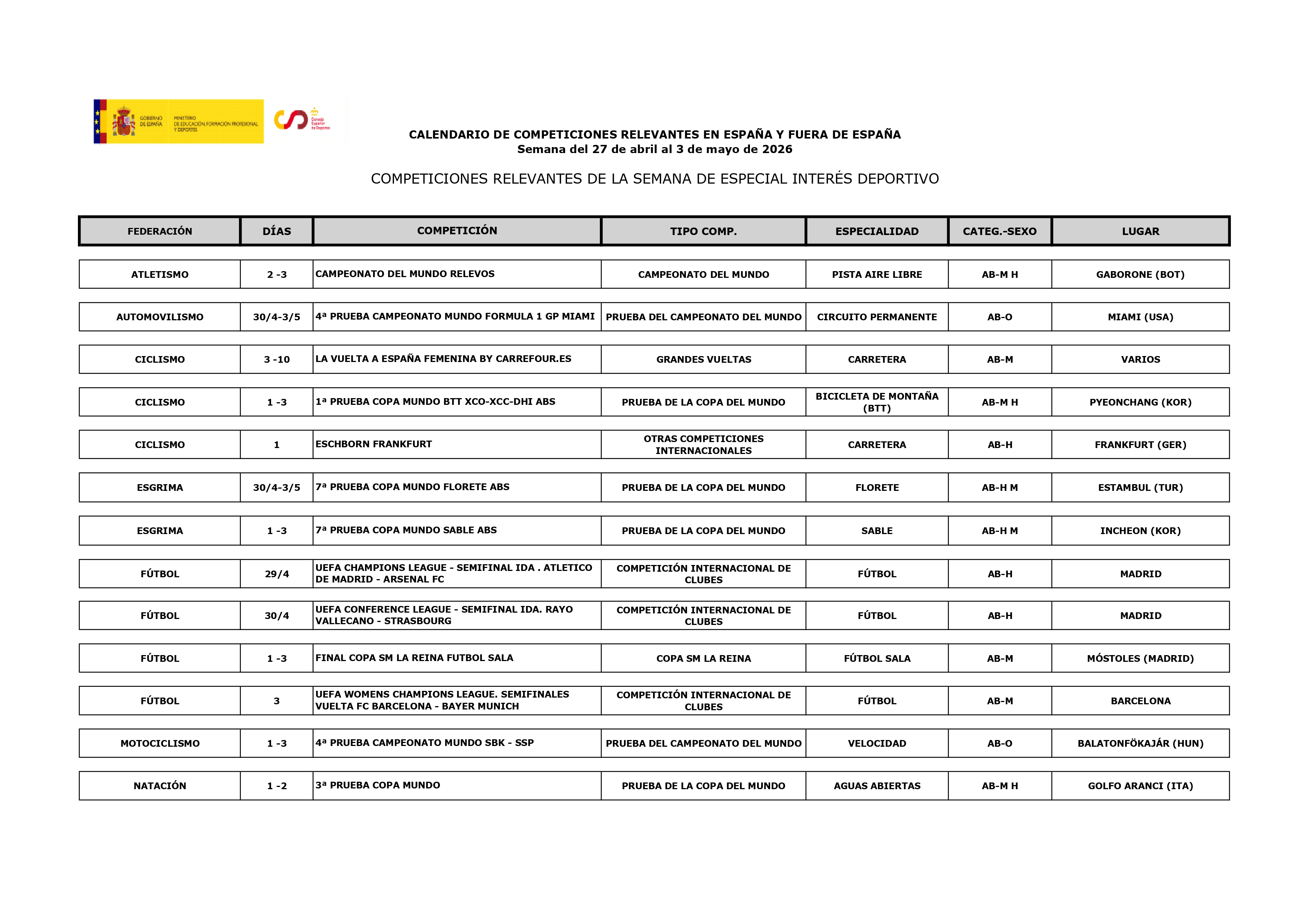 RESULTADOS DEPORTIVOS RELEVANTES: Resultados deportivos del 20 al 26 de abril de 2026
