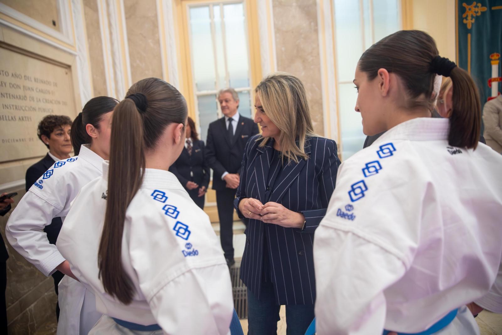 Durante el acto, y en presencia del presidente de la Real Federación Española de Kárate y Disciplinas Asociadas, Antonio Moreno, la ministra ha felicitado a los deportistas y miembros del equipo técnico por los éxitos cosechados.